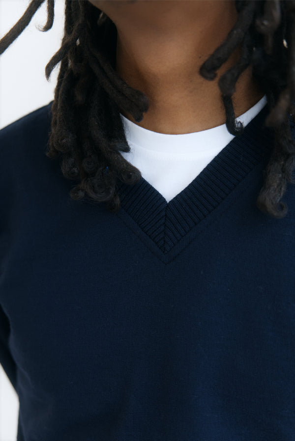 Le col V incarne une mode en constante répétition et renouvellement. Nous avons interprété à notre façon ce pull emblématique, porté depuis des générations. Une maille souple, aérienne, douce et robuste. A porter sur un tee-shirt, une chemise ou à même la peau.