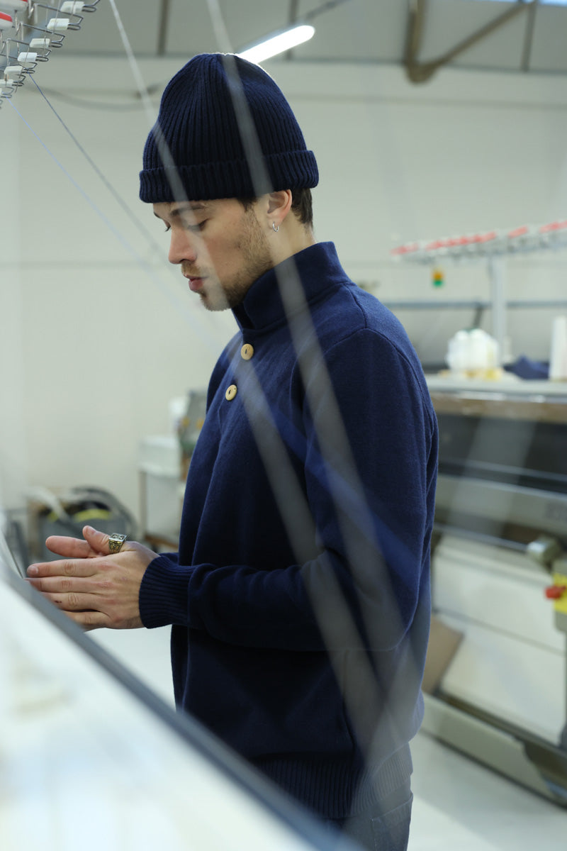 Nous garantissons un passage en machine car nous avons déjà pré-lavé chaque pièce ! C'est un des points les plus importants pour nous en maille : que chaque pull ressorte à l'identique une fois lavé.