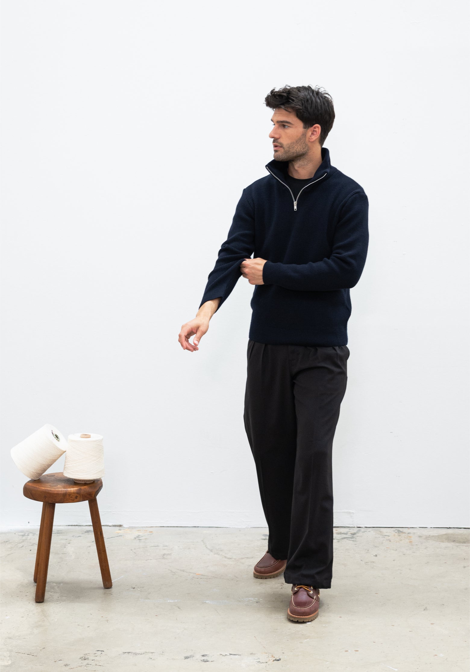 Nous garantissons un passage en machine car nous avons déjà pré-lavé chaque pièce ! C'est un des points les plus importants pour nous en maille : que chaque pull ressorte à l'identique une fois lavé.